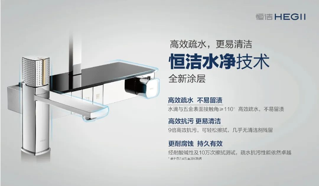 再如,衛(wèi)浴生活中長(zhǎng)期存在的痛點(diǎn)——水垢和污漬。水龍頭、花灑等衛(wèi)浴五金,使用過后一旦清潔不及時(shí)就容易水漬斑斑,甚至生銹,不僅會(huì)讓衛(wèi)浴五金失去光澤,還容易滋生細(xì)菌。雖然網(wǎng)上針對(duì)水垢的清除,有各種各樣的方法,但大多治標(biāo)不治本。恒潔創(chuàng)新推出的水凈技術(shù),直擊水垢、污漬等痛點(diǎn),從源頭上解決衛(wèi)浴產(chǎn)品的清潔難題。目前,恒潔水凈技術(shù)已經(jīng)應(yīng)用在恒潔坐便器、花灑和水龍頭等多種產(chǎn)品上,以實(shí)用科技助力用戶升級(jí)品質(zhì)生活。