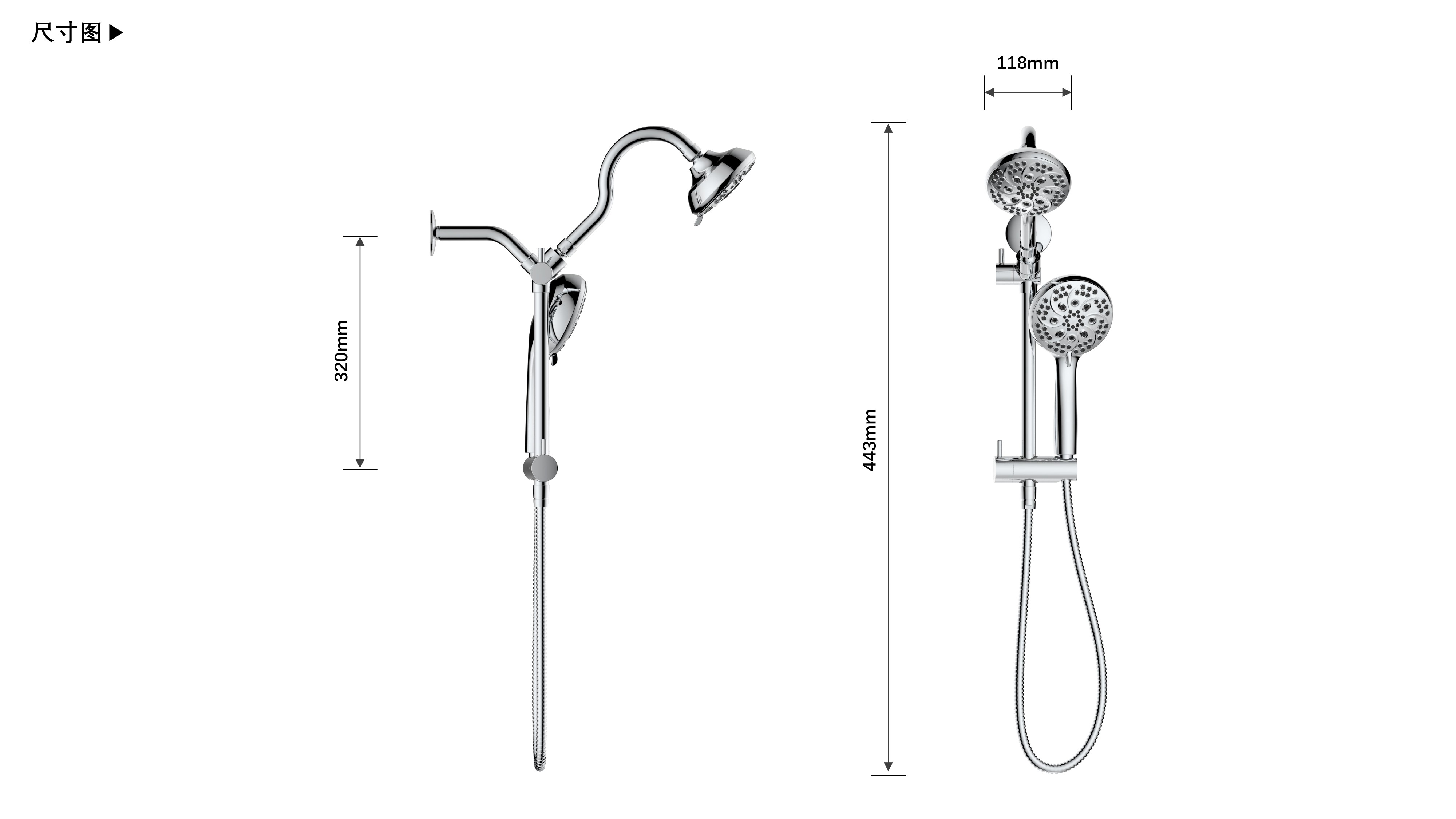 上出水彎管套裝;頂噴內(nèi)置球頭,可實(shí)現(xiàn)多角度旋轉(zhuǎn)調(diào)整;把手切換頂噴出水、花灑出水;轉(zhuǎn)動(dòng)把手調(diào)節(jié)滑座高低;8功能出水花灑